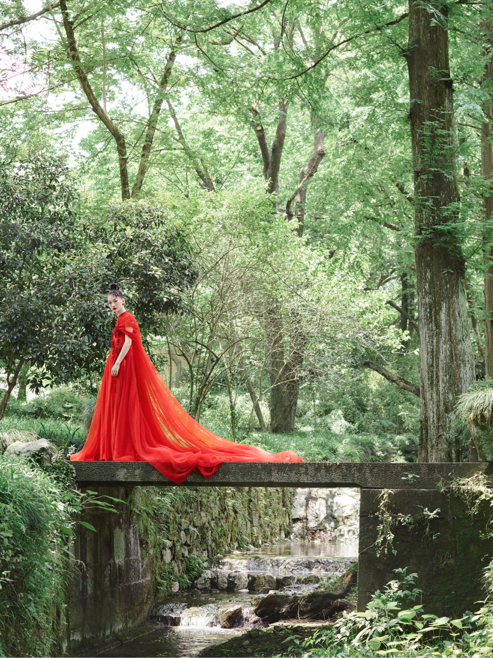 拍的时候正是杭州的初春,远眺西湖,远山淡影,弥漫着氤氲的水汽。▼要感受杭州的原始风貌,法云安缦是个非常好的去处。它在法云古村内,现在仍然保存着大量的老式建筑。素雅的黑瓦白墙、青石子路,墙面的老漆已经脱落到斑驳。▼法云安缦就在灵隐寺旁,可以近距离看到飞来峰绿荫石壁间的石刻佛像。▼Harper's Bazzar美国版2019年9月刊专门做了一期“新娘装”选题,也是在法云安缦拍的。当高定婚纱遇上传统的诗情画意,很有意思!▼灵隐寺附近还有不少寺庙,下图的梵天佛地就在永福寺内,是永福寺第一道山门。这个地方也被当地人叫做“钱塘第一福地”,有机会可以去打卡~▼西湖景区内的四季酒店也非常推荐去住一住,我前两次去都是住的这里,清幽宁静,在里面整个人心境都会非常舒缓平和。Cici项偞婧为《Wallpaper卷宗》2018年3月拍的这组就是在四季酒店取景的,好酷。▼