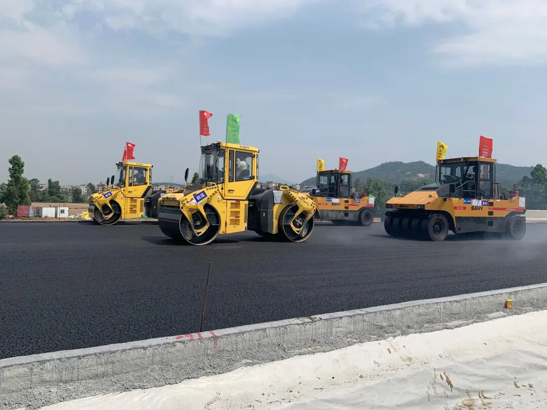“最先投入路面工程沥青摊铺作业的是机场高速公路的收费广场,将来这里会有22个通道(11进11出),是全线最宽的路段。”施工单位大成建设集团项目总工程师江文定说道,收费广场面积较大,是影响工期的重要节点。