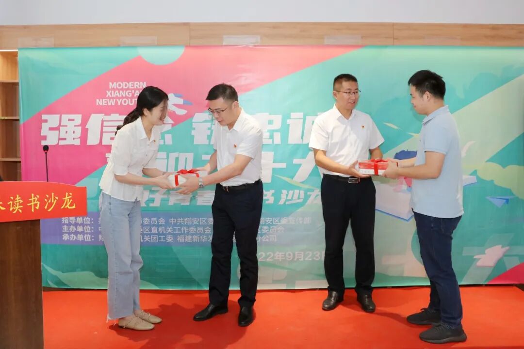 为进一步培育和践行社会主义核心价值观,建设浓郁的书香社会,引导全区广大青年思想进步,争做全民阅读风尚的引领者,在区委宣传部的指导下,团区委不断创新探索青年阅读学习的新模式。9月23日,以“强信念 铸忠诚 喜迎二十大”为主题,“尚好·青春”读书沙龙活动暨“新华·翔安青年学习基地”揭牌仪式在翔安新店新华图书城举办。