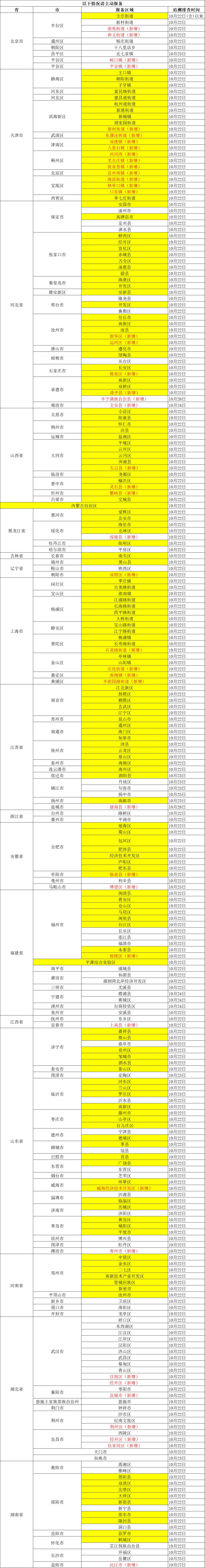 天津武清区、津南区、蓟州区、北辰区、宝坻区、滨海新区、山西大同市、忻州市、晋中市、辽宁朝阳市、上海黄浦区、普陀区、嘉定区、金山区、安徽阜阳市、江苏扬州市、广东阳江市、深圳市、福建福州市、四川绵阳市、陕西榆林市等地根据《新型冠状病毒肺炎防控方案(第九版)》相关规定新增划定高、中、低风险区。