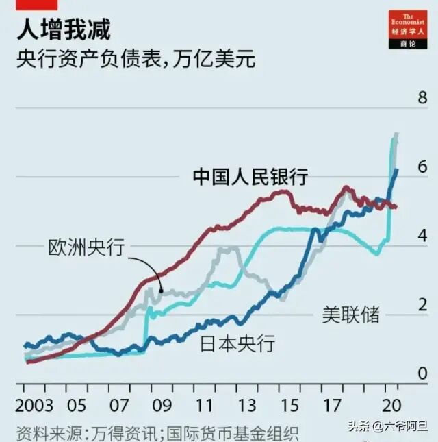 还是这张四大央行的资产负债表,去年疫情期间我们没有跟美国一起搞大放水,正如我在《美国放水酝酿危机,我们三大举措防止收割,一场金融暗战正在展开》这篇文章里详细介绍的,现在的世界,以美国和中国为代表,大家正在选择两种不一样的道路,美国是要大放水,中国是坚决不搞大放水。