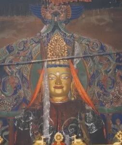 殿堂后方的无量寿佛是泥塑的。在当年造像的时候,阿底峡大师亲自为造像用的、一把一把的泥巴加持,诵念了许多遍无量寿佛咒: