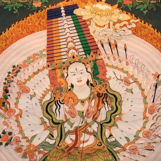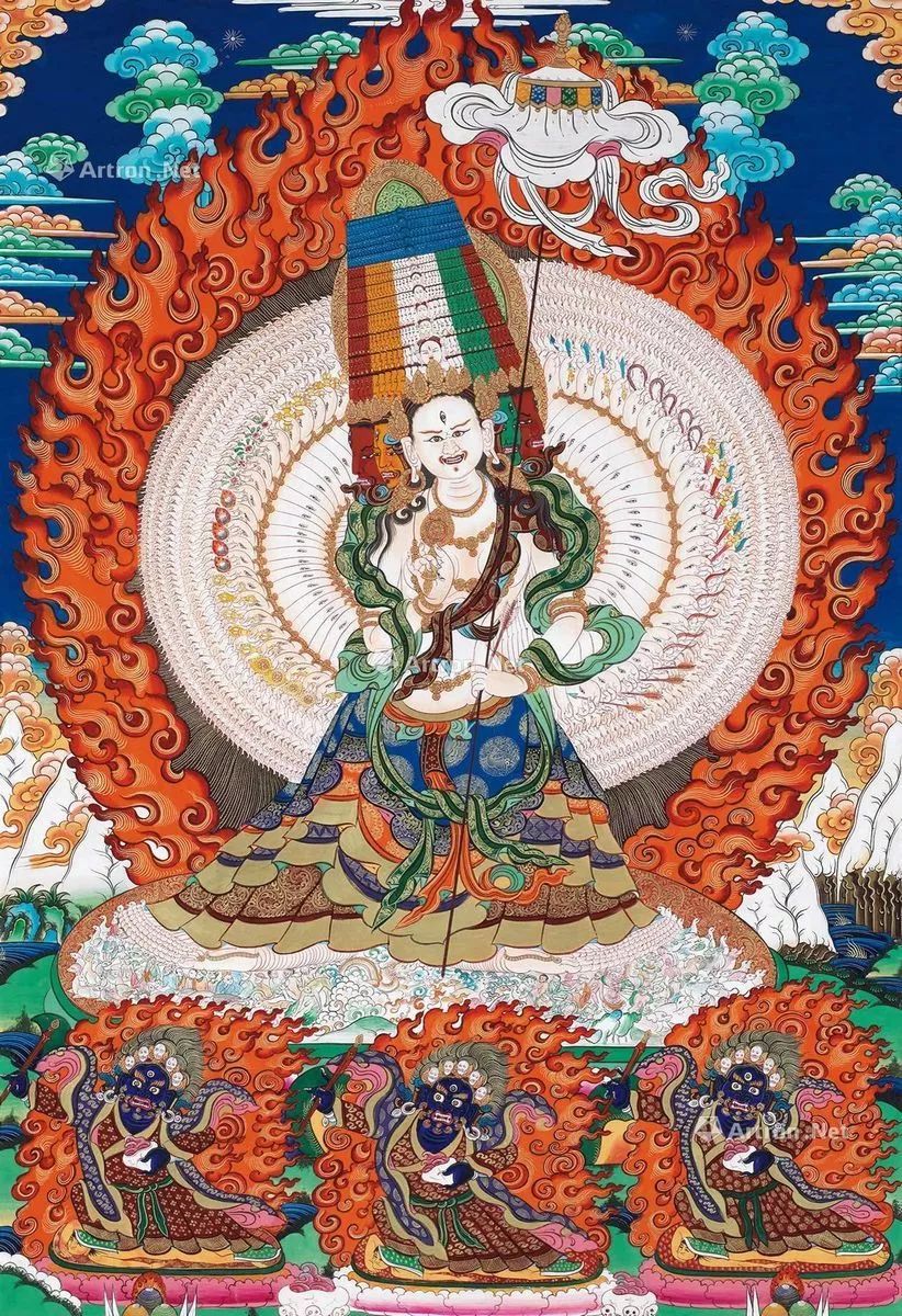 大白伞盖佛母愤怒相,复杂繁多,有一面二臂、三面六臂、五面六臂、二十一面、四十一面大白伞盖佛母等,而最为常见的是千面千手的大白伞盖佛母造像。