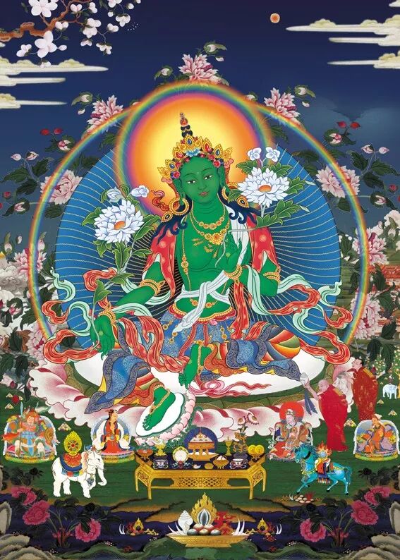 绿度母是二十一度母的总集:成就聪明。福德吉祥。辩才具足。世乐具足。多财富贵。贤瓶如意。疗一切病痛。鬼魅悉能除遣。灾疫消灭。能成一切善事。能灭一切罪障祈愿众生无有灾病、吉祥安泰。