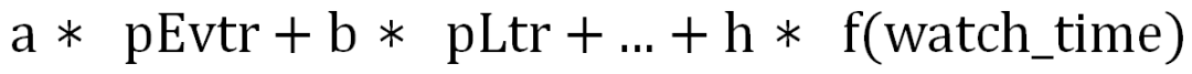 约束项包括各种互动,比如播放、点赞、关注等。约束项使用非线性约束:阈值内做线性的弱衰减,可以用一些约束轻微的去兑换时长;超出阈值的做指数强衰减,避免约束项过分被损害。