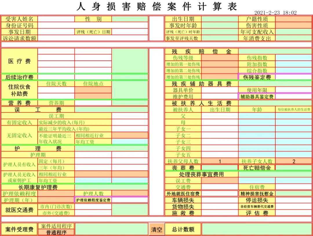 欲善其事,先利其器。今天想分享的这份自动计算人身损害赔偿数额的《人身损害赔偿计算器》,是我抱着极大的兴趣与激情制作,反复测试完成。具有外观简洁、操作便捷、法理清晰、数据精准、利于解纷、便于裁判的特点。