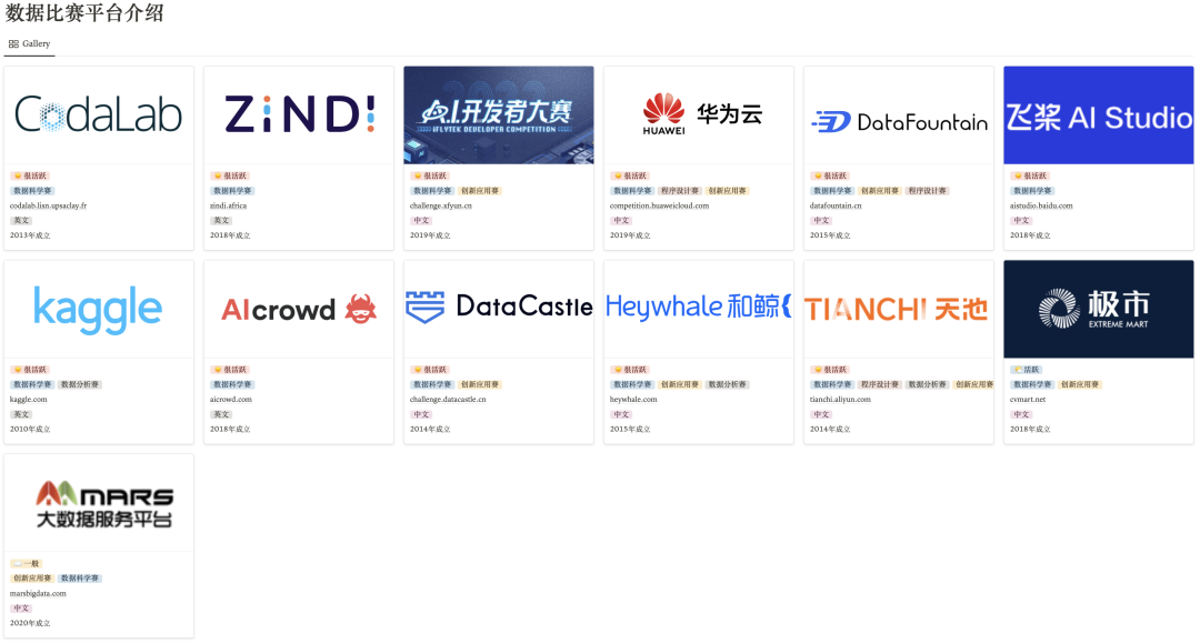 在调研数据比赛平台的过程中,会发现许多平台已经不再活跃,甚至官网都打不开了。不论如何还是感谢这些平台的存在,他们为技术的沟通和交流搭起了一座桥梁。