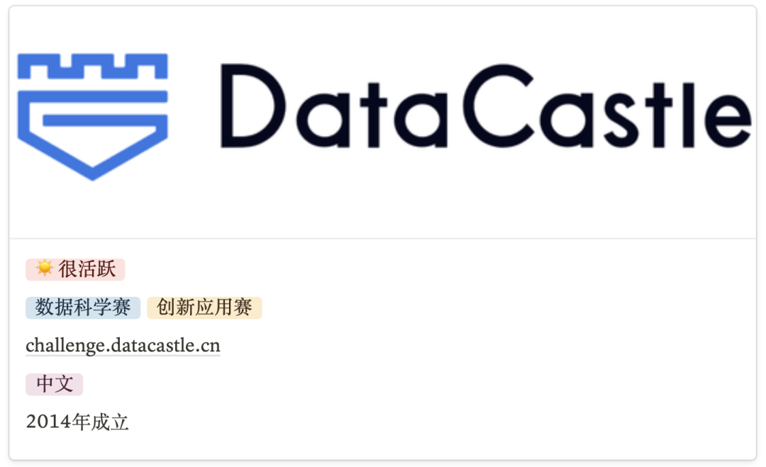 DataCastle数据科学学习社区隶属于成都数聚城堡科技有限公司。是由周涛堡主创建的数据极客圈,聚集了全球数据精英、领先的数据科学思维与智慧以及各行业领域优质数据资源, 在大数据产业价值链的关键环节不断输出优质的大数据人才、大数据解决方案以及数据科学核心技术知识。(来源于官网主页)