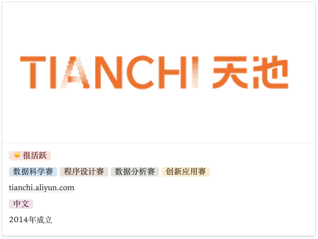 背靠阿里,经常有阿里业务相关的比赛在上面举办,平台的认可度高 平台比赛类型丰富,涵盖四种比赛类型 大部分比赛都有交流群,举办方回复及时
