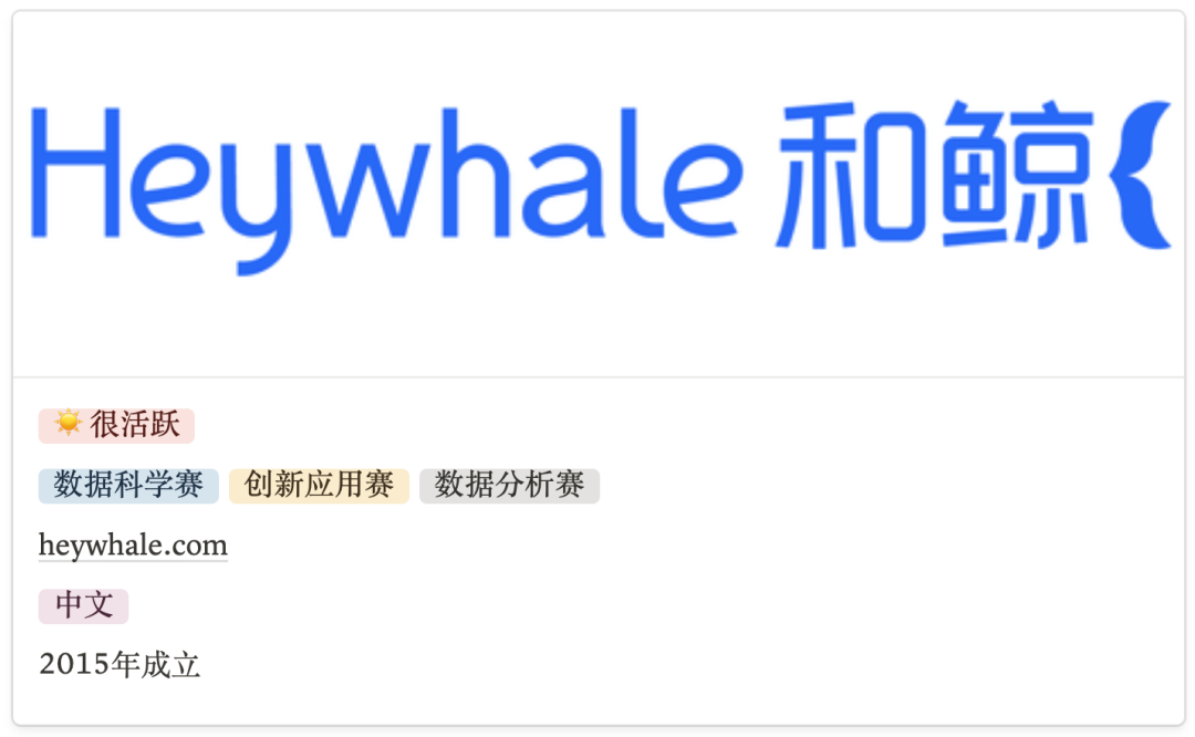 和鲸科赛,数据科学竞赛平台。提供完备、友好的竞赛管理系统,协助政府、企业、高校,通过数据竞赛,推动人才招募、品牌建设、数据开放,借助数据竞赛,培养懂业务、懂数据、会创新的“复合型人才”。(来源于官网主页)