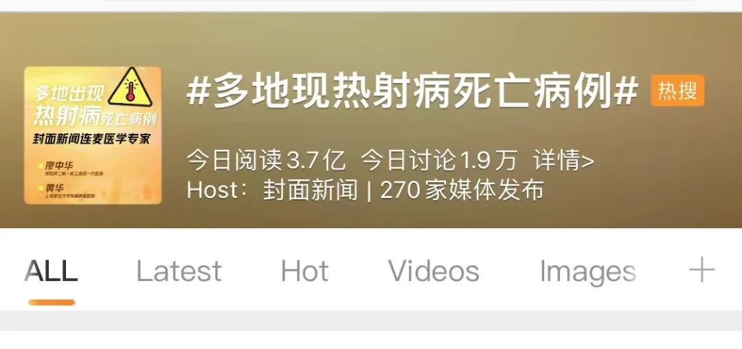 这两天,#华西医院一天收治 3 例热射病#、#浙江一工人因热射病多脏器衰竭死亡#、#多地出现热射病死亡病例#等话题在网络上引起了广泛的讨论,高温之下我们知道了这个死亡率能达到 70%~80%的可怕疾病——热射病。