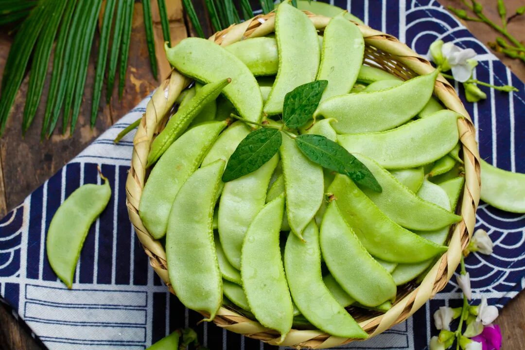 扁豆可以说全身都是宝,嫩荚肥厚鲜嫩,种子也是滋补养颜的上品,不仅矿物质和维生素的含量比其他蔬菜高,还具有除湿、健脾、止泻的功效。