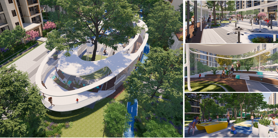 堂客厅、全龄活动中心、社区运动场、滨河步道、艺展邻里街巷、宅间花园、秋千主题花园...精致的生活体验,让景观串联起人与人之间更为丰饶的邻里温暖,让每个人都能在此找回社区的归属感。