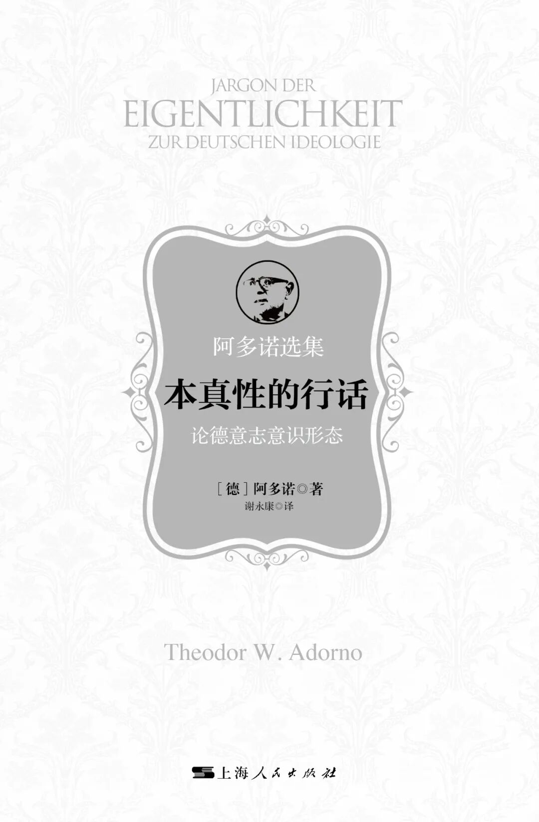 近日,上海人民出版社出版了由海南大学社会科学研究中心教授、南开大学哲学院讲座教授,博士生导师谢永康由德语直译的阿多诺著作《本真性的行话——论德意志意识形态》。