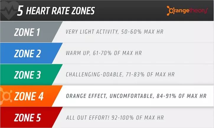 而OTF的命名Orange Theory「橙色理论」,则是这家健身房的核心训练理论:一个小时高强度间歇的游戏化团体循环训练,达到橙色(84%-91%)的心率区间,完成标准化的训练效果。