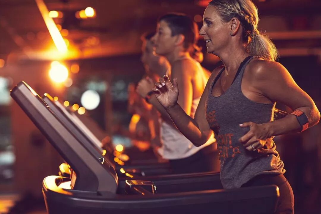 当用户最高心率值达到84%或85%时,大屏幕上就会显示出“橙色区”;这也就意味着其机体将在接下来的24至36小时内加速新陈代谢、从而持续燃脂。而OTF的目标便是在时长60分钟的课程内帮助用户进入橙色区并累积12分钟以上。