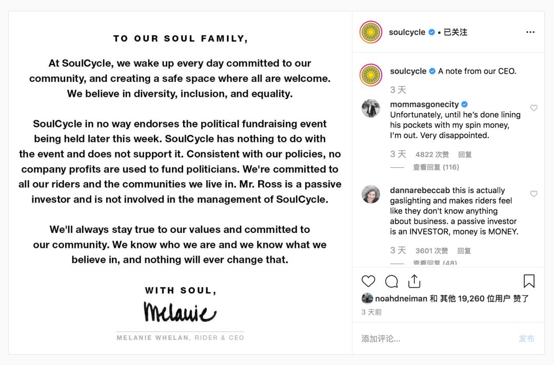Equinox和SoulCycle的品牌价值核心,在于其极强的社群价值。此次事件的快速发酵,让人看到了美国两大头部健身房品牌的极强社群价值——不管是