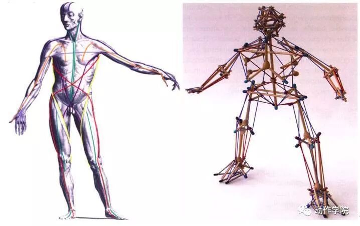 即:筋膜为覆盖并贯穿着全身的肌肉、骨骼、内脏的胶原纤维组织,也是全身张力传递的网络基础。