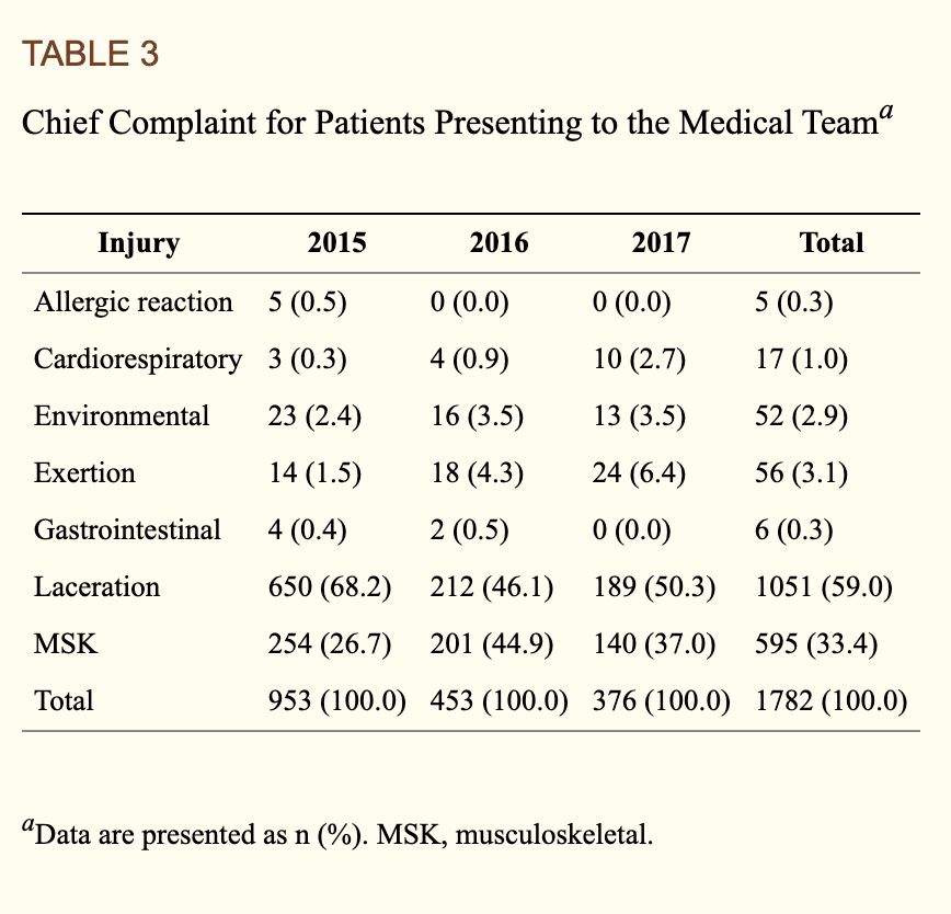 比如,美国运动医学期刊Orthopaedic Journal of Sports Medicine,曾经对2015-2017年发生在加拿大的33场斯巴达赛事分析发现,在7万余名参与者中,共有约2千人发生运动伤,其中肌肉撕裂伤占比55%。