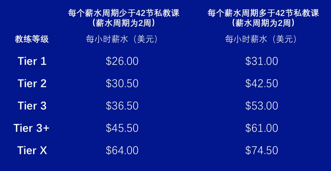 ■ Equinox 不同教练等级下的课时费
