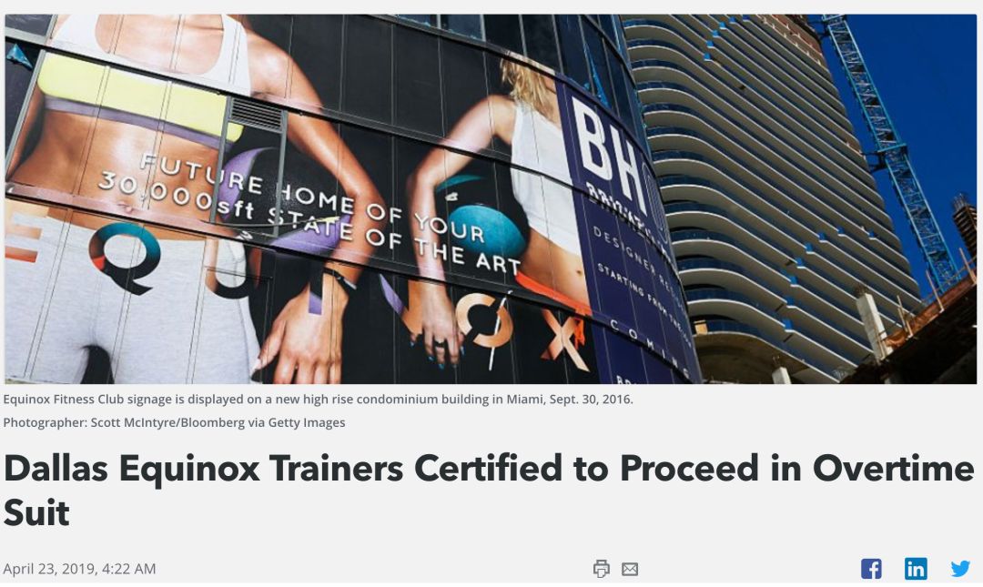 名为Joe Matarazzo的Equinox教练副总监表示,1000名教练中有近50%的流动率,离职原因普遍是对工作不满意。相反,没有选择离职的Equinox教练,为了达成晋升加薪要求,往往会在一周内工作80-90小时。比如,在达拉斯、波士顿、纽约、旧金山的部分Equinox教练表示,常常会因为过度劳累,在瑜伽垫上睡着,前任教练Zdenek Dzur坦言,要达到8-9万美元的年薪,可能需要像「超人」般工作。其次引发了下一个问题:Equinox教练也在面临中国教练们的「开单」难题。Equinox洛杉矶门店前任教练Alexander Miotti称,曾经有教练总监曾鼓励他,义务花费数小时时间写邮件,推销健身课程。Miotti也提到,不满12个小时的工作时间,无法应付业绩压力,甚至,Equinox的初级教练向纽约时报表示,每周20个小时的班次轮换时长,难以和用户保持维系,而将时间投入于业绩的教练们,也做不到自我身材管理。相反,一部分Equinox经理称,教练需要学会时间管理,他们不赞同加班,也不支持睡在俱乐部里。最后,为了业绩而拼搏的Equinox教练,还面临着薪资压榨。事实上,近年来美国联邦法院,已处理多起教练起诉Equinox的案件,且多是由于未支付加班薪资。早在2013年,Equinox曾在加利福尼亚州,以565万美元赔付了两起教练加班薪资的相关案件,今年4月,一起教练请假看望病重家人,却被克扣薪资的案件也得到胜诉,而Equinox拒绝就任何诉讼发表声明。同样,有教练匿名表示,曾经在实施物理治疗的假期过程中,被Equinox要求回到工作岗位授课,也有教练总监指出,当客户由于旅行或出差而取消预定的课程,可能会对教练实行减薪。