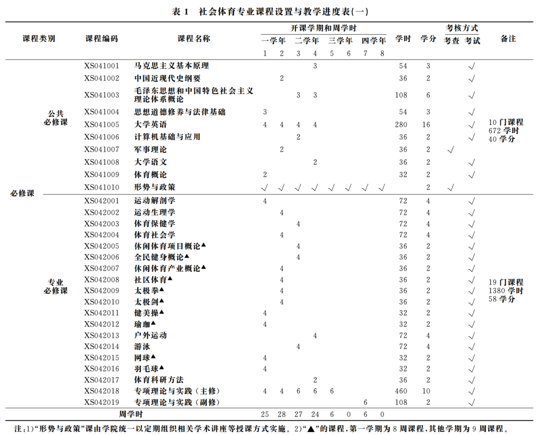 这里有首都体育学院该专业的具体课程安排: