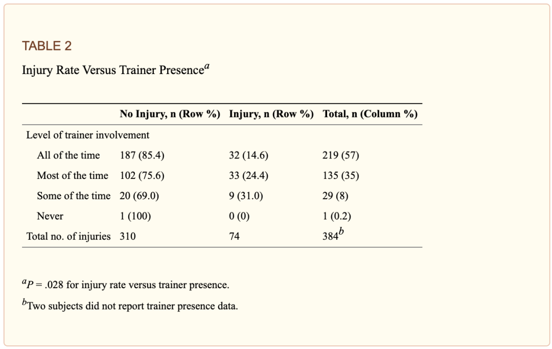 对于教练员与CrossFit运动损伤的关联性,2014年美国骨科运动医学协会就曾发表回顾研究。这项基于486名CrossFit爱好者的回顾行调查发现,受伤率与教练水准间存在显着相关性,而且与男性相比,女性更倾向于寻求教练员的指导关注。