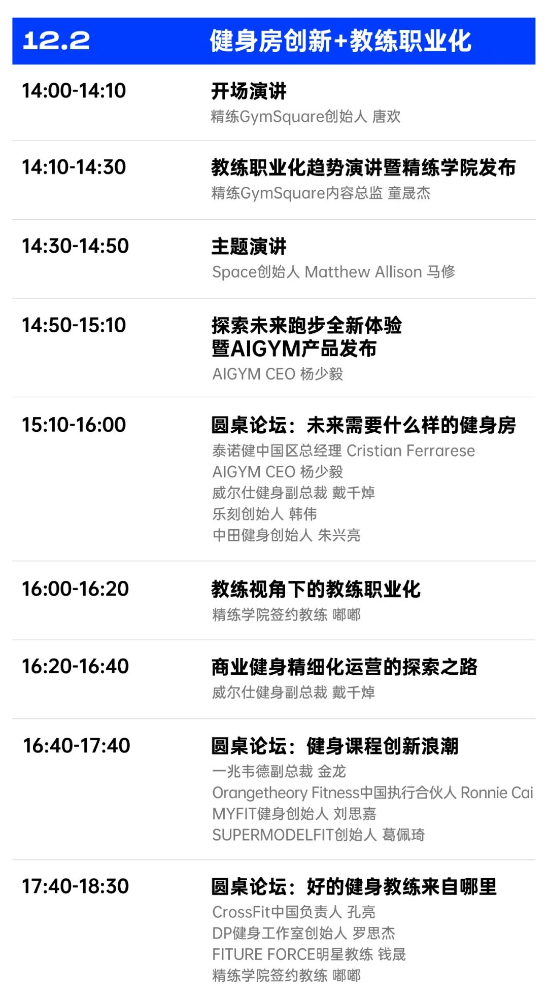 大会聚焦中国健身房创新、家庭健身科技,运动健康消费,教练职业化,以及健身资本风向。阔别一年,精练大会再度回归,我们希望放眼全球、聚焦中国本土,探讨中国健身商业未来。