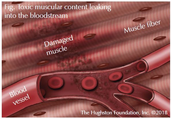 简单来说,横纹肌肉溶解是由于过度运动,造成肌肉横纹肌细胞坏死,肌红蛋白等进入血液循环,引起的生化紊乱和各种脏器功能损伤的综合征。