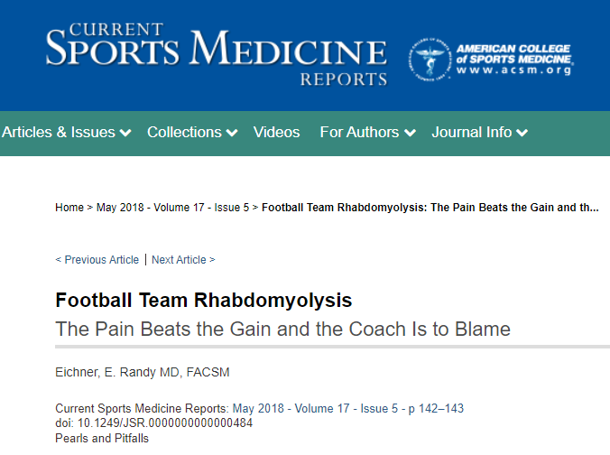 首先从训练状态、适应性而言,美国运动医学院ACSM阐述了橄榄球运动员休赛期后,50%rm的100次颈后负重深蹲,导致大部分球员因横纹肌溶解而住院。而《Risk factors for rhabdomyolysis in the U.S. Army》提到,运动性横纹肌溶解正在入伍0-90天内的士兵内高发。