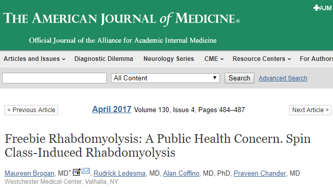 美国医学杂志曾分析了3例因动感单车骑行造成横纹肌溶解的患者,提出了患者缺乏对骑行速度及阻力的正确调节,及时补水的重要性认知,甚至横纹肌溶解的显性症状也了解甚少,因此导致的病情恶化,也使部分患者最终不得不血液透析。