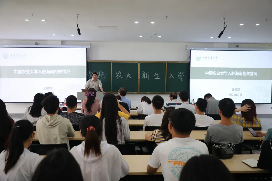 三亚中国农大研究院副院长王福军主持新生见面会并做总结讲话。他表示,三亚中国农大研究院将秉持着对标国家战略需求、对接海南产业发展等目标,通过为海南自贸港培养输出农业青年科技人才,为“南繁硅谷”建设贡献力量。他还为同学们介绍了园区周边环境及基础配套相关情况,并强调了校园安全工作。
