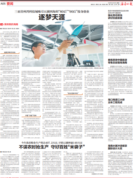 4月19日早上8时,北纬18°的阳光把三亚崖州湾科技城办公区几座五六层高的建筑抹成淡淡的金色。一辆辆通勤中巴鱼贯而至,从车上走下的百分之九十都是“80后”“90后”,他们整理好背上的双肩包,步履匆匆,不一会就都消失在建筑群的办公楼里。