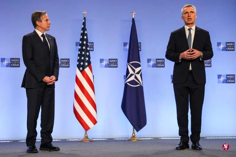 ▲4月6日于布鲁塞尔北约总部召开的为期两天的北约外长会议,是一次西方军事集团的重要集结,被北约秘书长斯托尔滕贝格(右)形容为“重要里程碑”。(法新社)