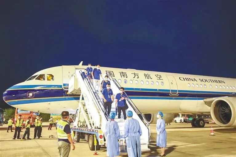 8月6日,161名广东医疗队员平安抵达三亚凤凰国际机场,驰援三亚疫情防控
