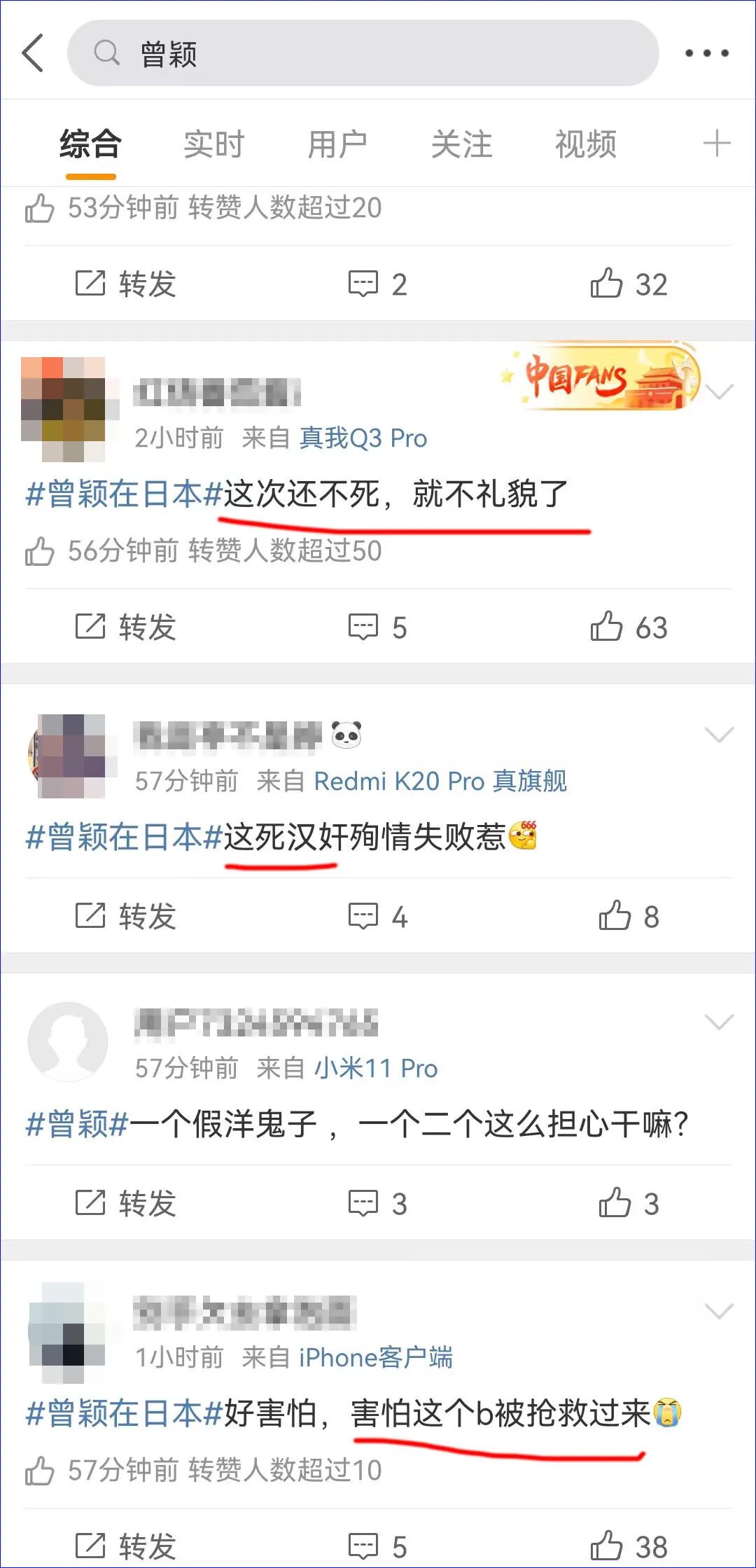曾颖自杀的消息传开后,网络上一片欢呼。在微博上输入“曾颖”两个字进行搜索,能看到满屏的诅咒和兴高采烈的声音。