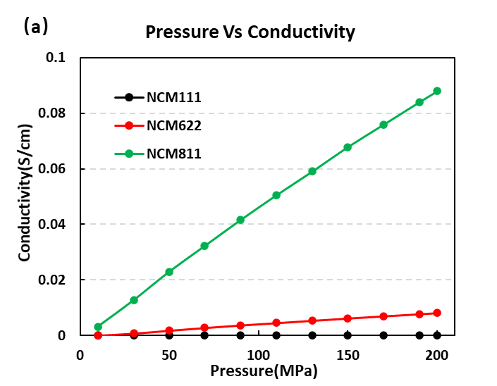 图4.三种NCM材料的电导率曲线(a)