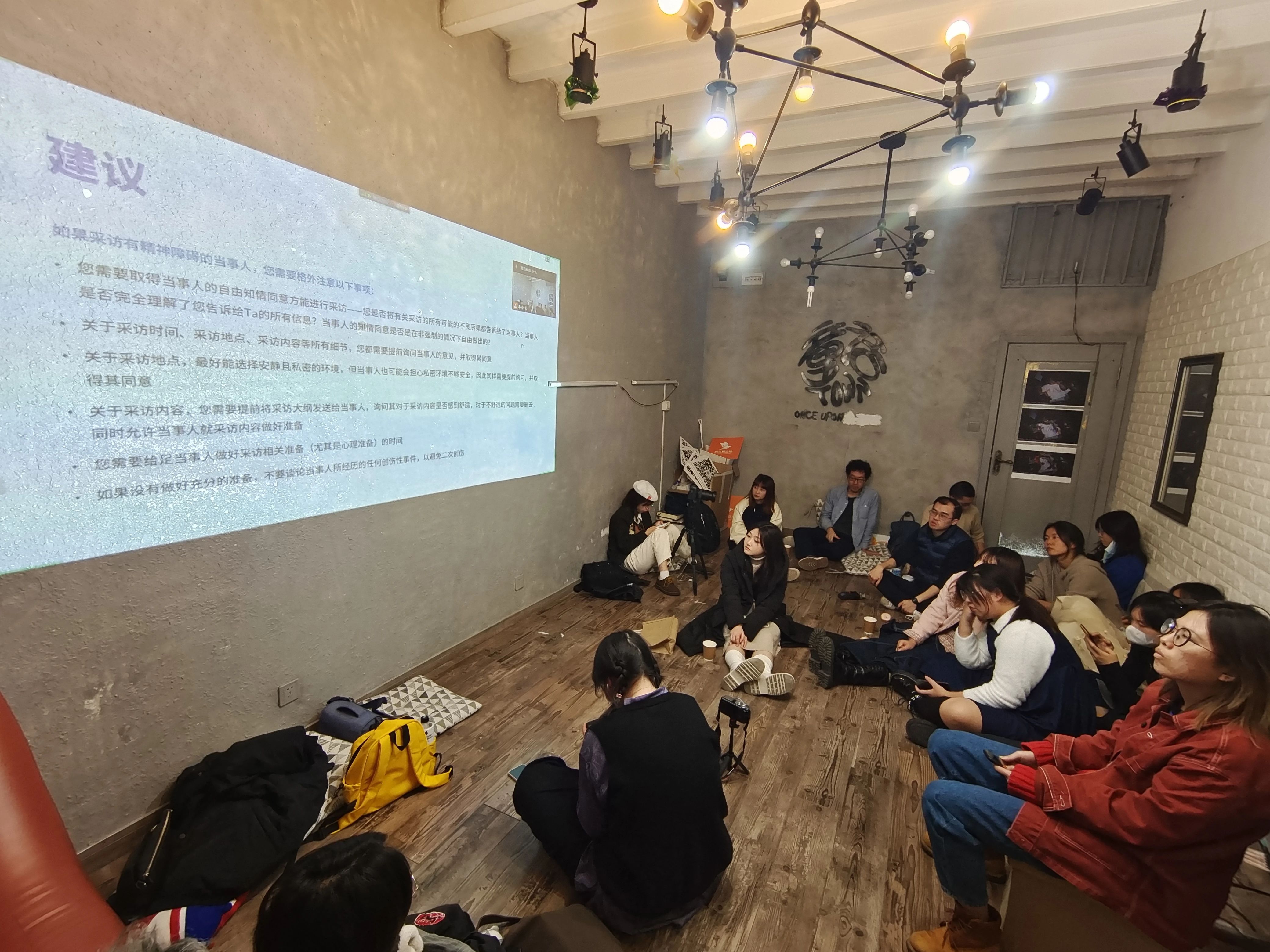 第一次活动时,我们在有限的技术条件下进行了线上联动,线上的伙伴参与体验可能不太顺畅,望理解。第二次因为场地网络原因,没办法进行线上联动。但依然会进行力所能及的记录。线上的伙伴想发表看法可以在群里发表或者直接以单独成文的方式回应,现场我们代为复述。
