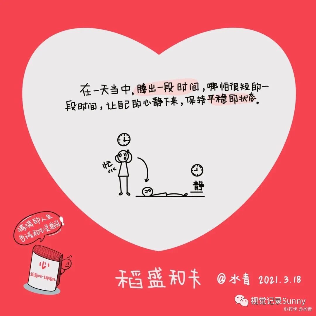 在一天当中,腾出一段时间,哪怕很短的一段时间,让自己的心静下来,保持平稳的状态。