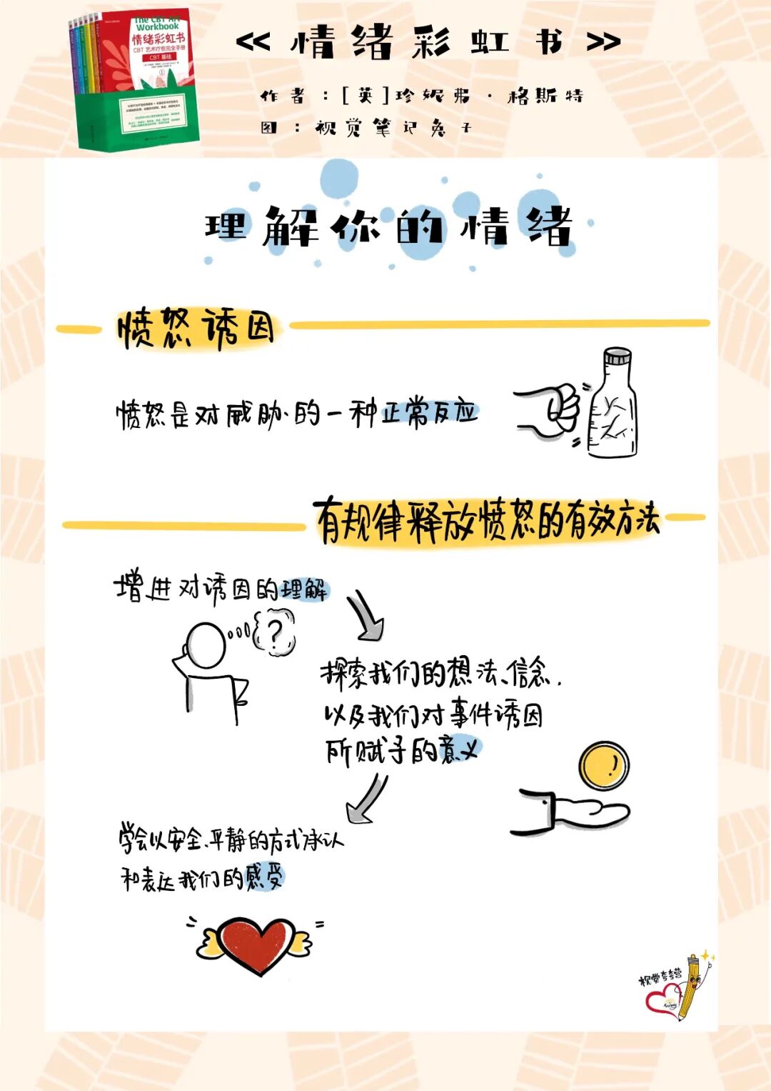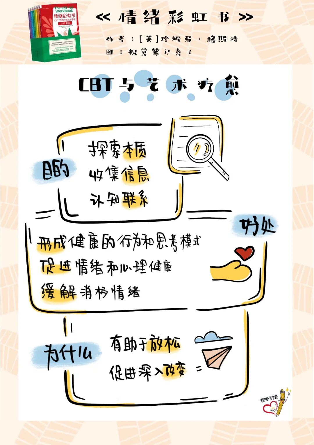 作者:珍妮弗·格斯特(Jennifer Guest),英国咨询师和心理治疗师协会认证会员,拥有艺术和设计的荣誉学位,从事临床治疗工作已有 14 年,在英格兰北部地区的多个咨询中心和学校为成年人、夫妻和年轻人提供咨询服务。在咨询工作之外,格斯特还对绘画和涂鸦充满了热情,因此她也把自己对艺术的热爱与治疗工作结合,开发出本书中极具特色的艺术疗愈练习。