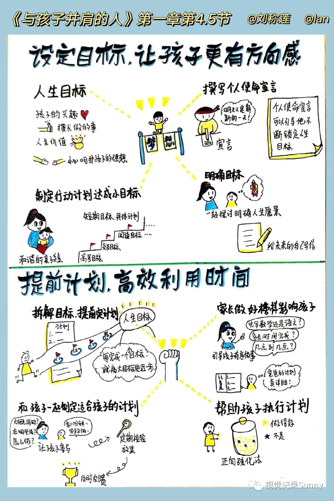 设定目标,让孩子更有方向感:在和谐的亲子关系为前提,帮助孩子制定人生目标,把大目标拆解成小目标。不断朝着目标前进!