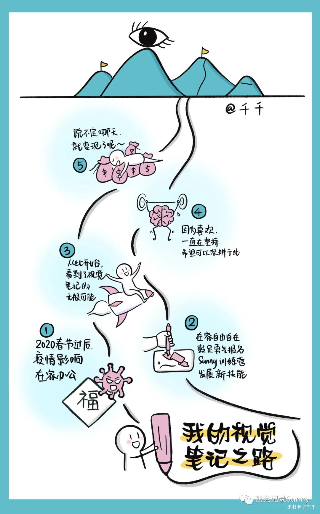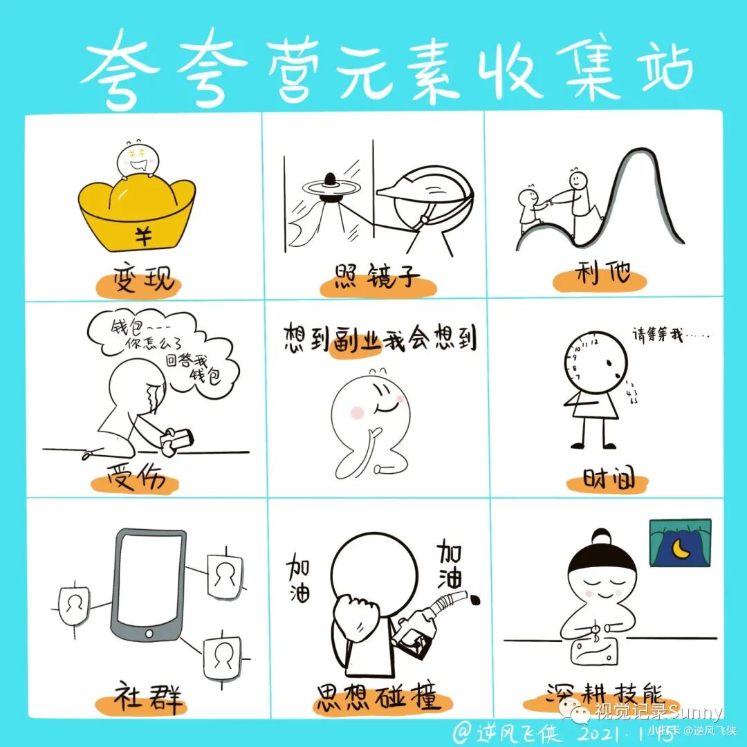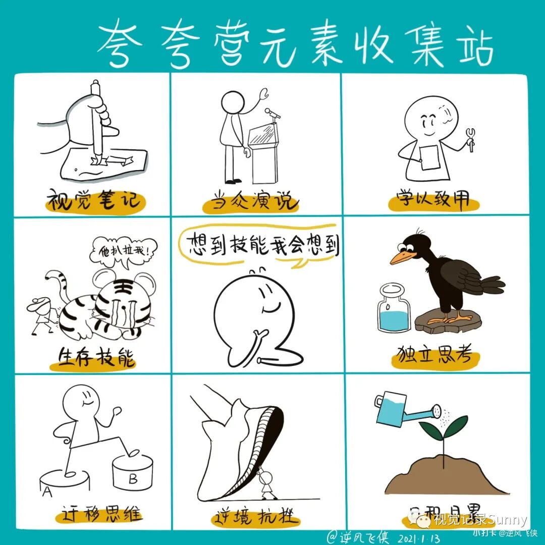 有没有那么一个【技能】,让人眼前一亮,脑洞大开不停思考,有没有那么一个技能,让旁人惊叹,创新表达画面跳跃,视觉笔记点亮生活,羽翼渐丰技能猛增,从此表达不再单一,左脑发散出最强音,遇见更好的自己,就要来这里,我们在sunny的视觉夸夸营在等你。