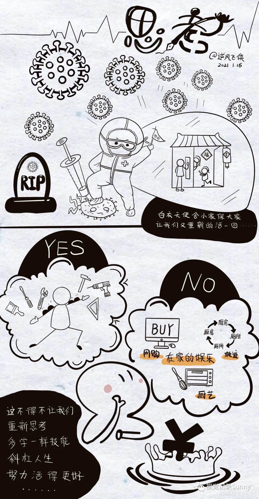 你会悲叹,这个世界究竟怎么了?乌鸦哀鸣,病毒遮住光明,居家隔离,这一时刻,中国被按上了暂停。截至目前,疫情依然还在影响着我们的生活,疫情依然没有离去。