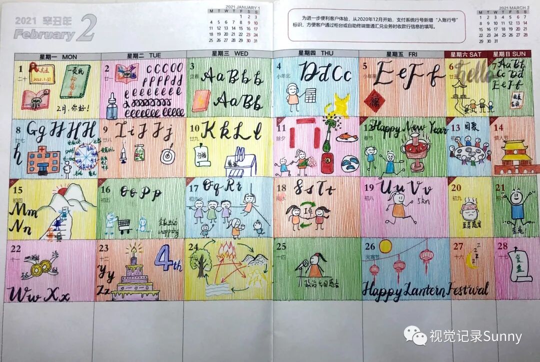 3、2月开始,除了例行的每日复盘总结,我开始用视觉笔记在日历上做日签记录,一个月下来,生活多姿多彩,不负光阴不负己。
