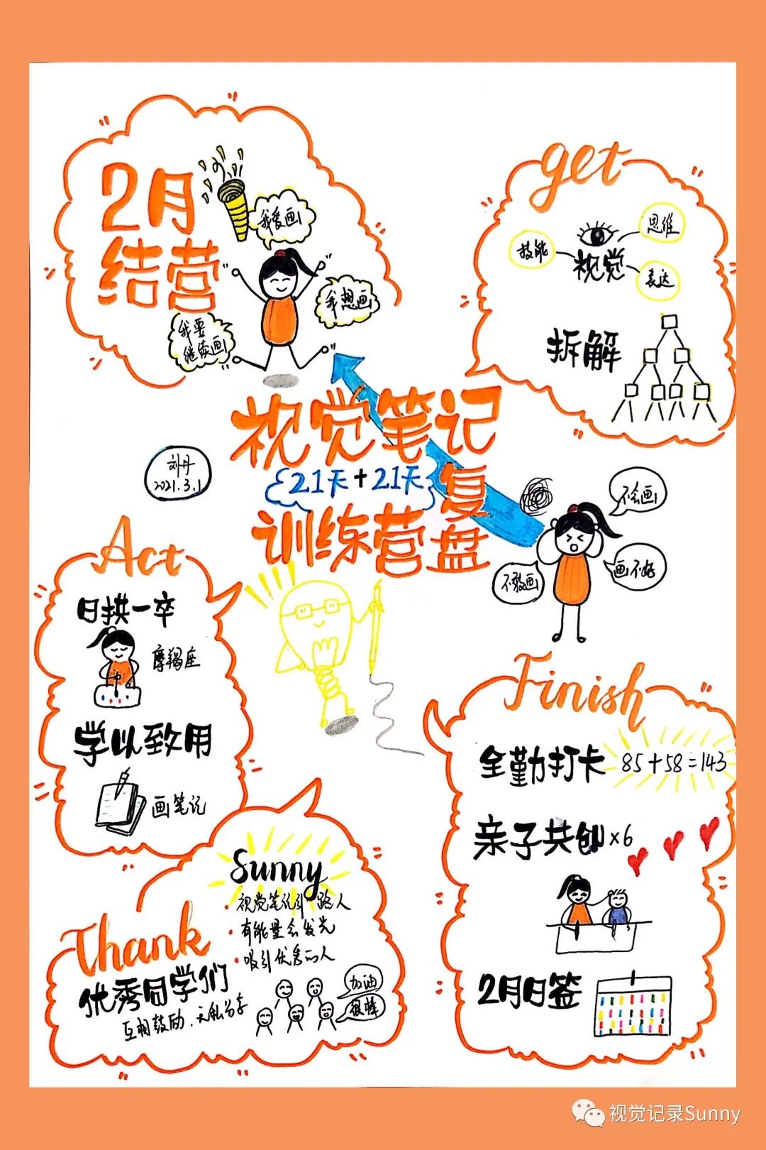 1月份打开视觉笔记的大门,2月回炉复训、温故知新,在节前节后工作旺季和春节假期期间,完成42天的集中学习、全勤打卡,输出143张视觉笔记和练习,真的是一件很有成就感的事情呢!