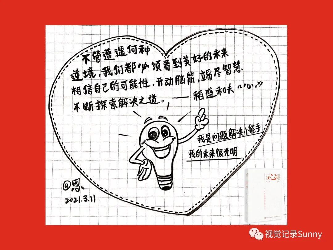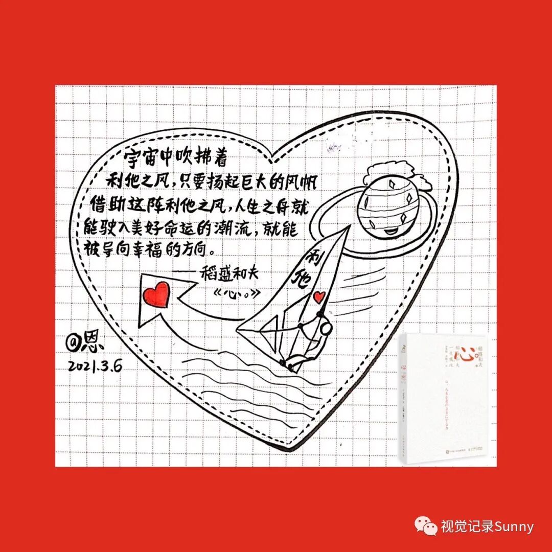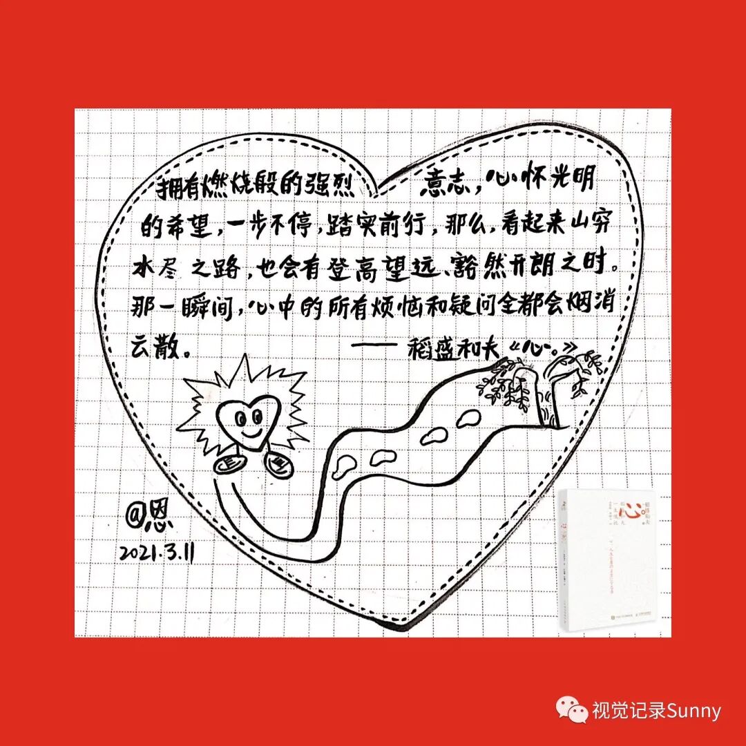 3月份《心:稻盛和夫一生的嘱托》金句画书打卡活动,不知不觉也坚持打卡满21天啦,以下图片是21天的手绘金句卡片,看着这些手绘视觉记录还是蛮有成就感的,感恩遇见Sunny老师,感动聚在夸夸营,夸夸营,一起赢,值得拥有!