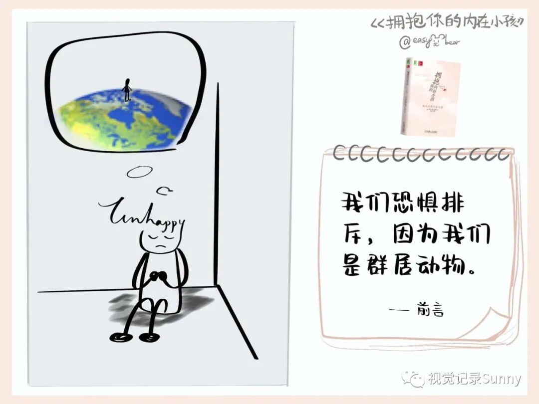 你需要先把内心的恐惧想象成一个饱受惊吓的小孩,他可能正蹒跚学步,可能刚刚开口说话。这个小孩可能会感受到的恐惧,比如,经常会感到不安全,觉得周围都是威胁;总是难以安静下来,常常焦躁不安等。