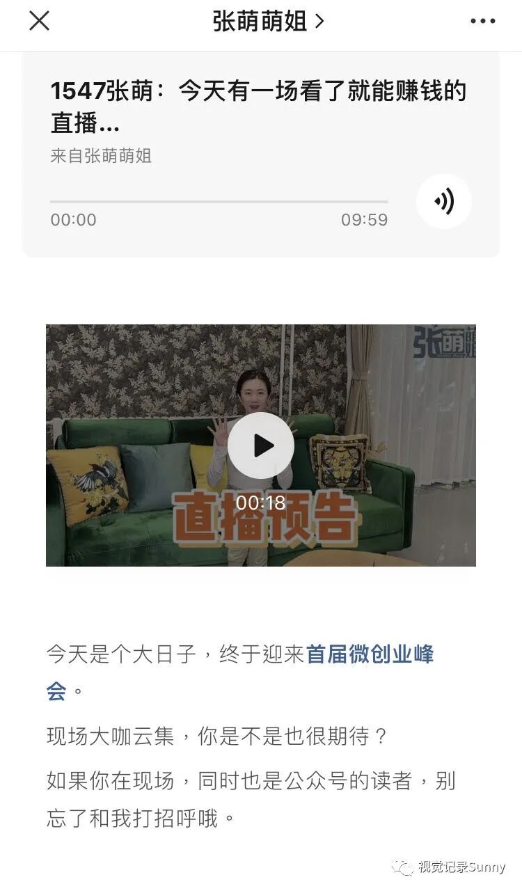 早上看到张萌萌姐微信公众号的推送,关于今天首届微创业峰会的预告,说这是一场看了就能赚钱的直播。光看众多大咖嘉宾云集,就感觉赚到了!而在这场直播中,视觉夸夸营的小伙伴们都做了什么呢?