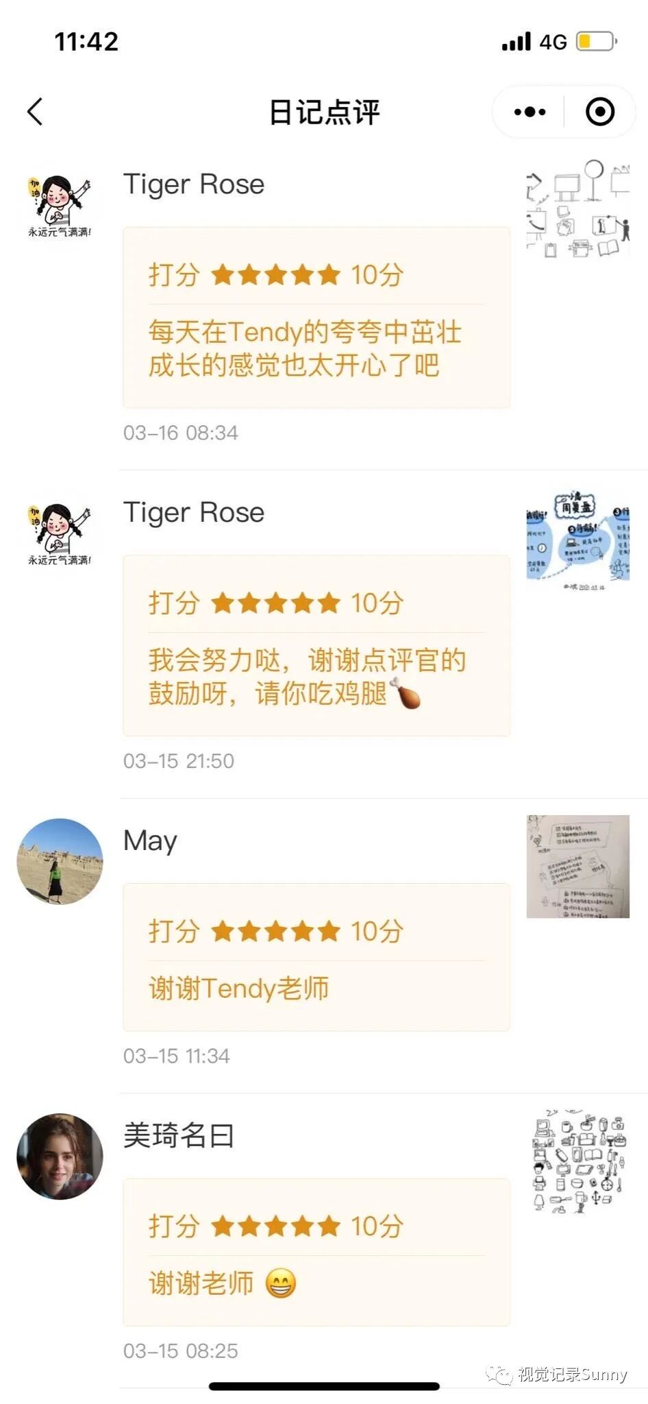 1、夸夸营里有那么多大神级别的人物,而我竟然在小白营当了一共7期的点评官了。第一次在自己还是懵懂的领域被称“Tendy老师”。自己的鼓励夸赞能让别人进步和开心,自己也得到心情满足。