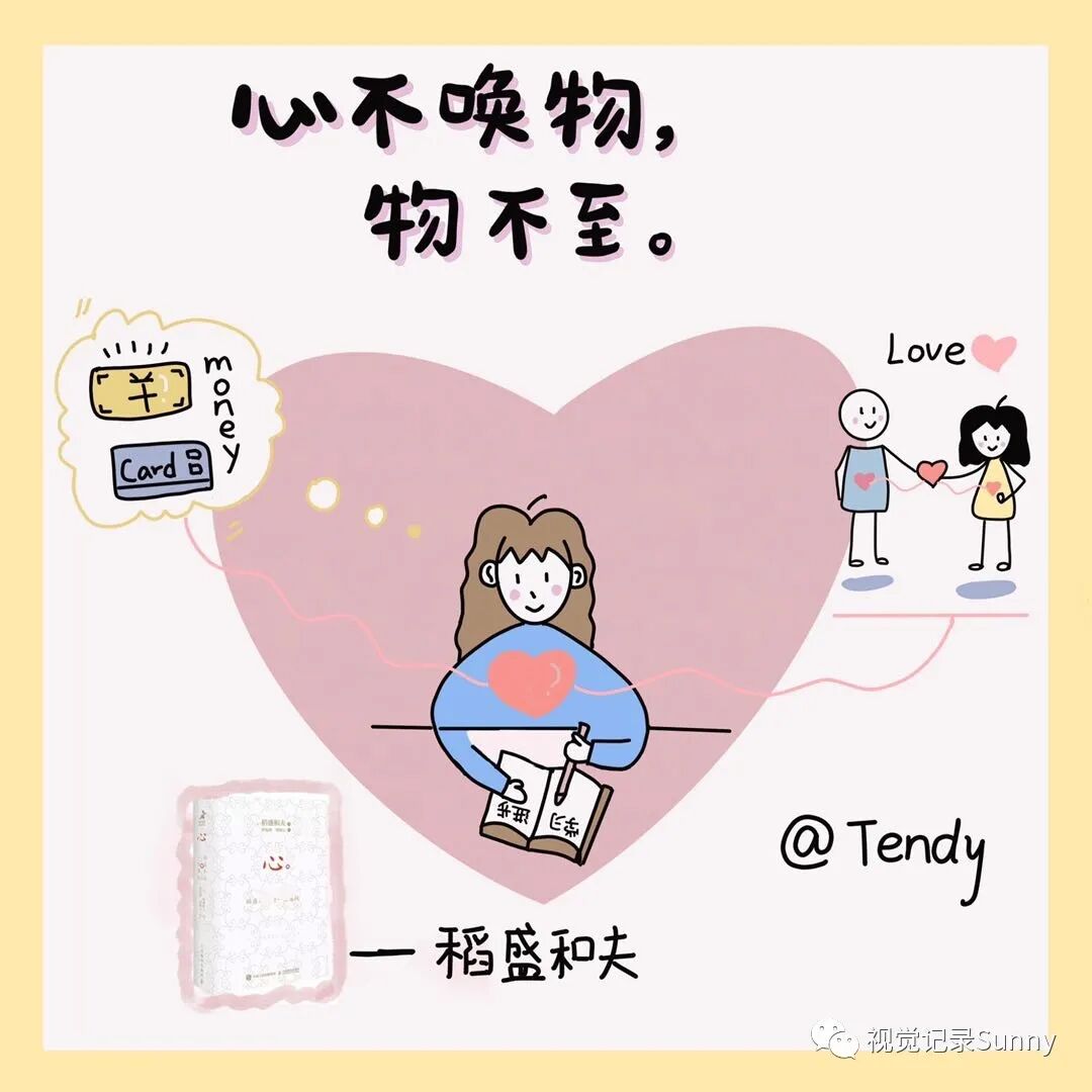 没接触视觉笔记的自己平时很喜欢写写文字,看看喜欢的书,自从学会了视觉笔记,就把文字转译图像应用到自己的学习笔记中,生活中,有时候画(日签)表达自己的心情加上配文,感觉让自己的心情变得越来越好,也让自己的生活慢下来,不那么浮躁了。但是好像自己也有想过放弃,就是当作体验一下新技能而已,没想过要怎样?现在想想觉得这个想法挺幼稚的。